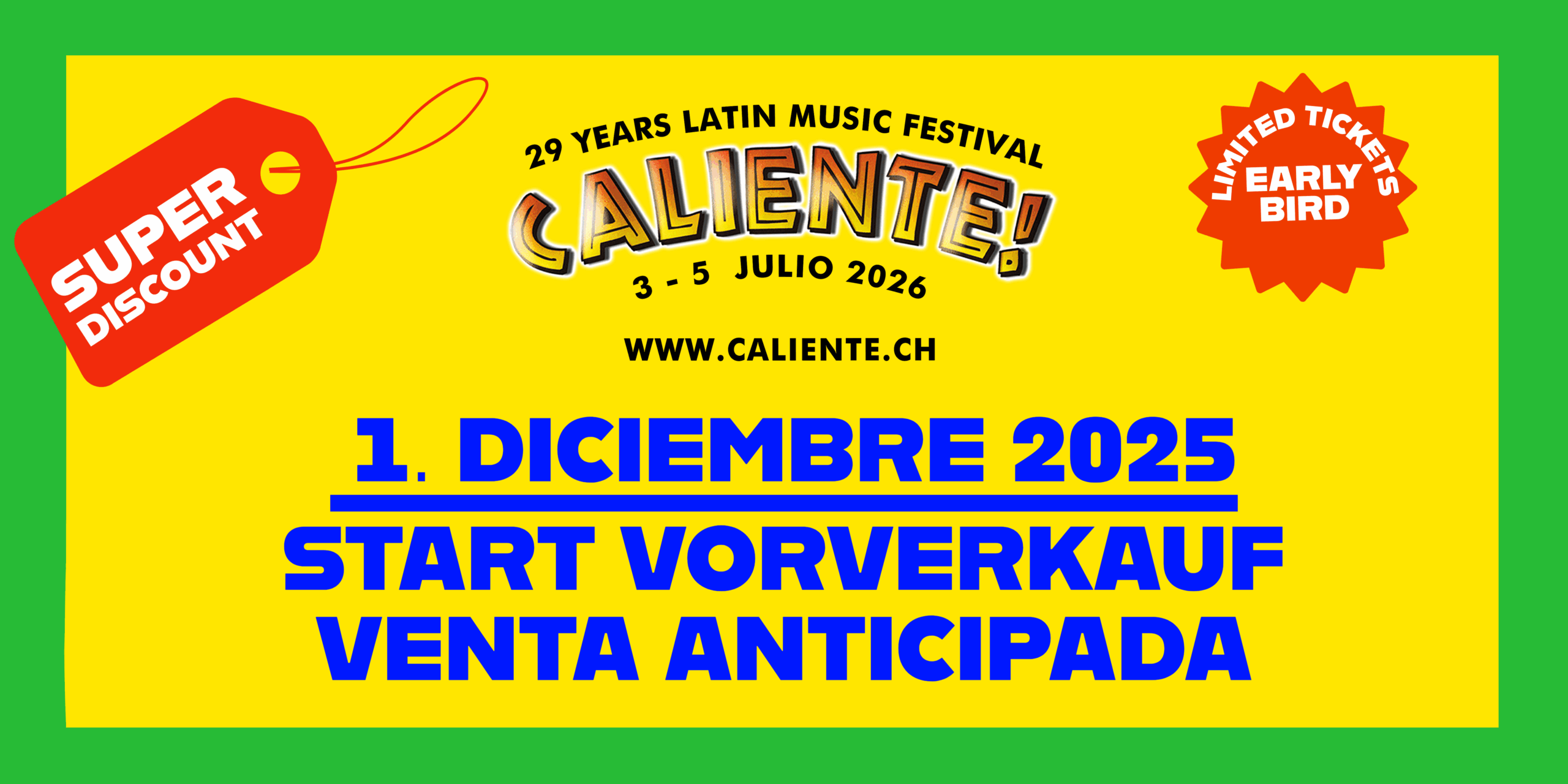 Vom 4. bis 6. Juli 2025 verwandelt sich Zürich erneut in ein pulsierendes Zentrum lateinamerikanischer Lebensfreude – das 28. Caliente! Latin Music Festival bringt pure Leidenschaft, Rhythmus und karibisches Flair in die Stadt!