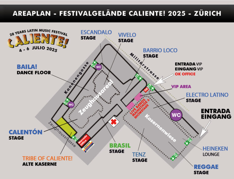 Vom 4. bis 6. Juli 2025 verwandelt sich Zürich erneut in ein pulsierendes Zentrum lateinamerikanischer Lebensfreude – das 28. Caliente! Latin Music Festival bringt pure Leidenschaft, Rhythmus und karibisches Flair in die Stadt!