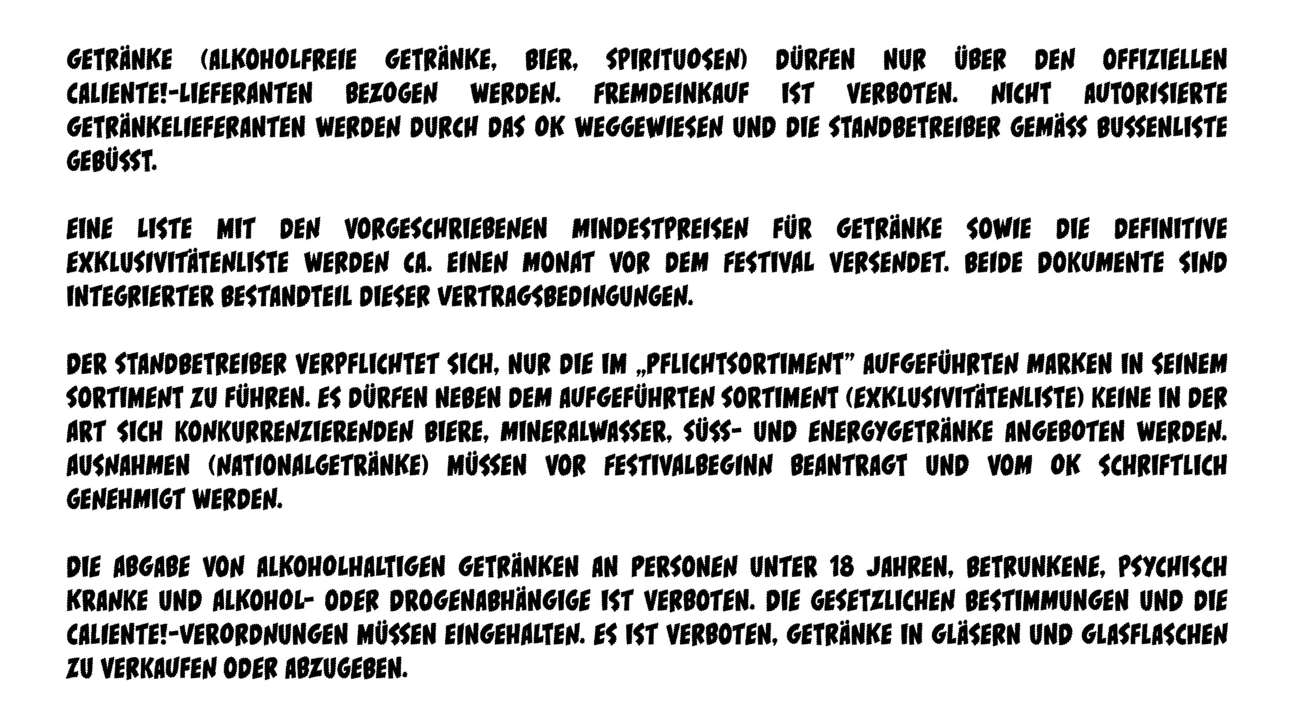 Nationalgetränk (nur Foodstände) | CHF 300 |